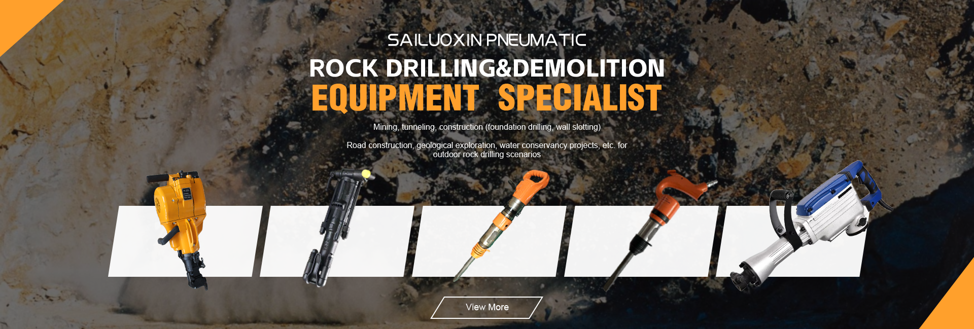 Productos principales:Taladro de roca, pico de aire, pico neumático, martillo de astillado, martillo de demolición